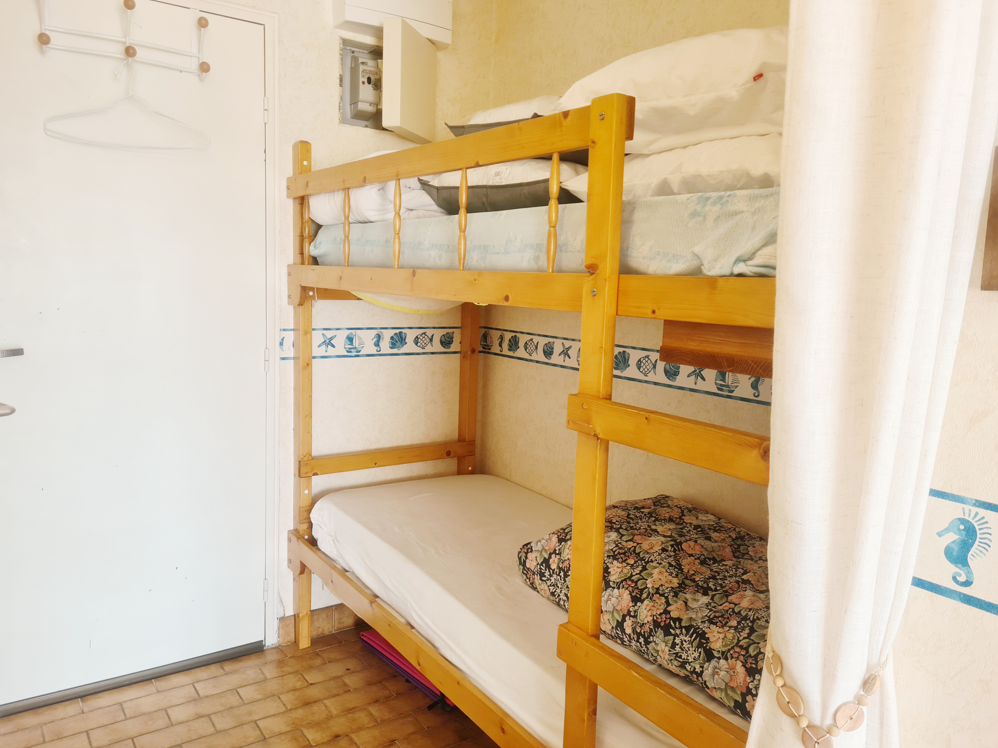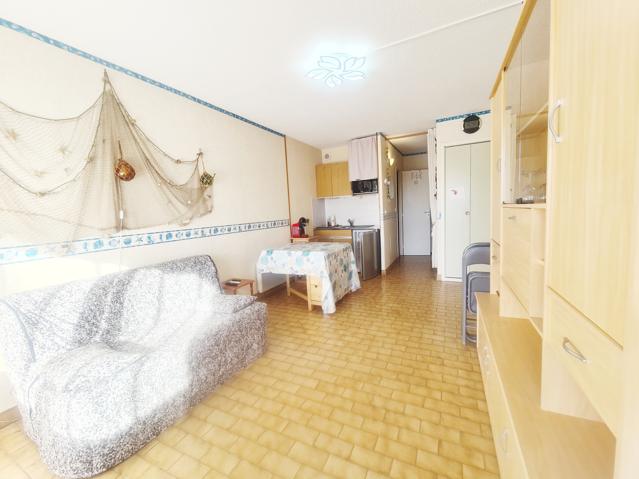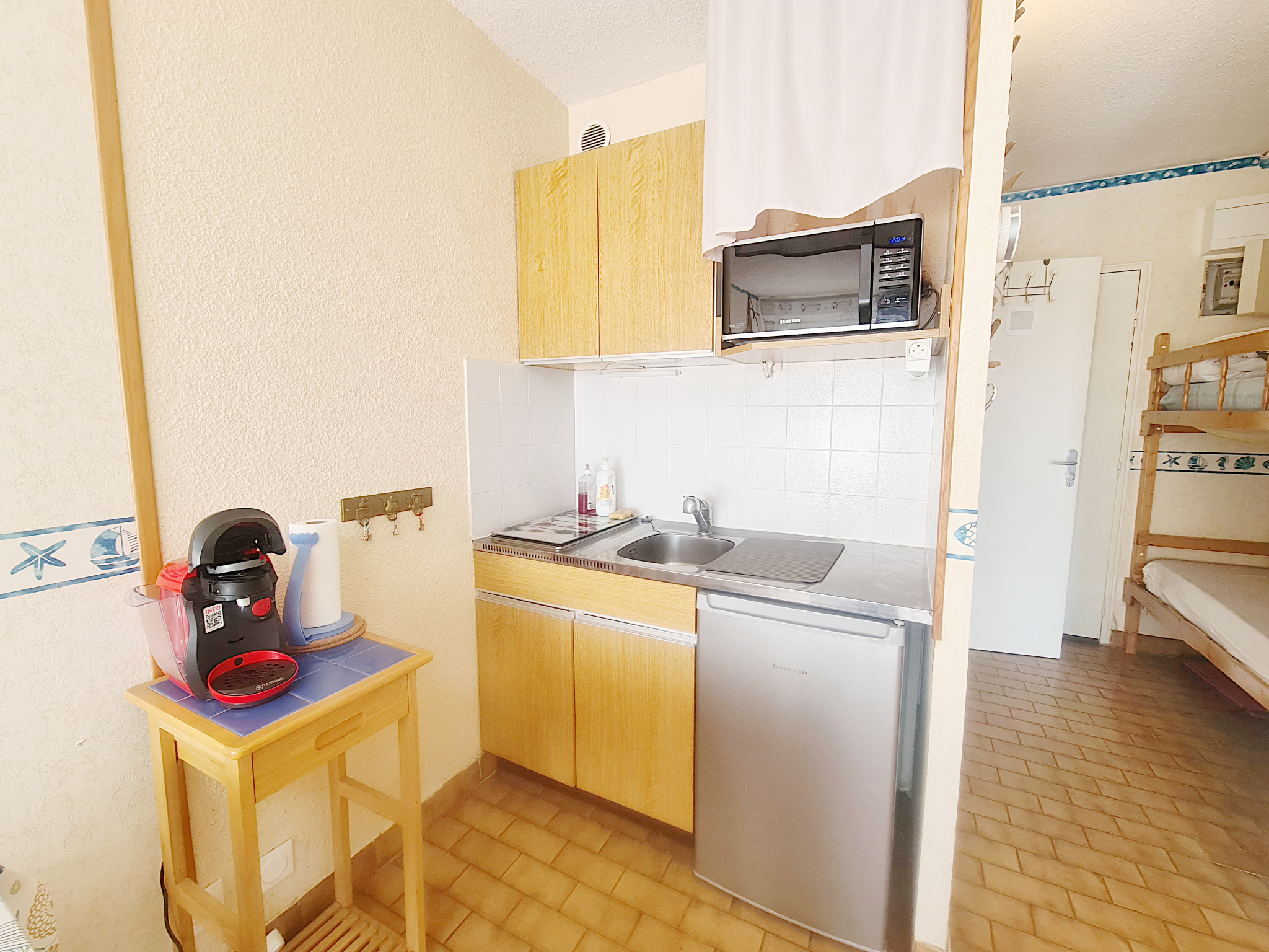 TARIFS 2026 : Mi-juin à fin juin : 440 €/sem - 29/08 au 05/09/2026 : 440 € / sem - HS : juillet - Août : 590 € / sem - Frais dossiers : 30 € - Petit animal acceptés sur demande à l'agence + 35 € - taxe de séjour en sus de 0.90 cts €/pers adulte à 3.87 cts € / pers (en attente sur décision mairie en cours) - IDEAL VACANCES CE STUDIO 4 PERSONNES CLASSE 1 * (22 m2) REZ DE JARDIN ET SA TERRASSE SUD DE 20 M2 (accès par portiilon pour plage boucanet) Parking privé devant portillon terrasse - Il dispose d'un salon/coin cuisine avec 2 plaques élec - 1 micro ondes - 1 frigo top - un BZ pour 2 personnes au salon - à l'entrée 2 lits superposés (70 cm) - une salle de bain baignoire avec WC inclus - 1 raffraichisseur Klarsten - Bien en copropriété (141 lots princ) - Fiche Info georisques sur demande